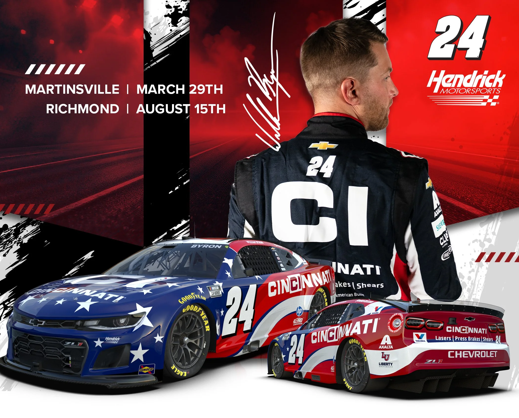 Cincinnati Incorporated to Sponsor William Byron and No. 24 Team for Two Key Races in 2026