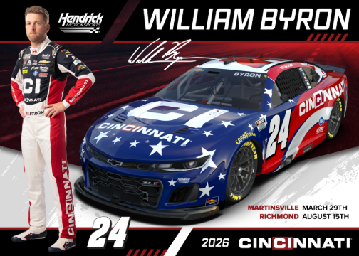 Cincinnati Incorporated to Sponsor William Byron and No. 24 Team for Two Key Races in 2026